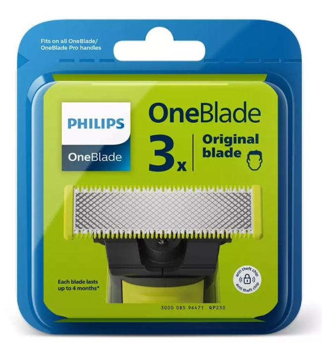 Opis: Originalne zamjenske oštrice za brijače aparate Philips OneBlade. Pakiranje sadrži 3 kom oštrica.