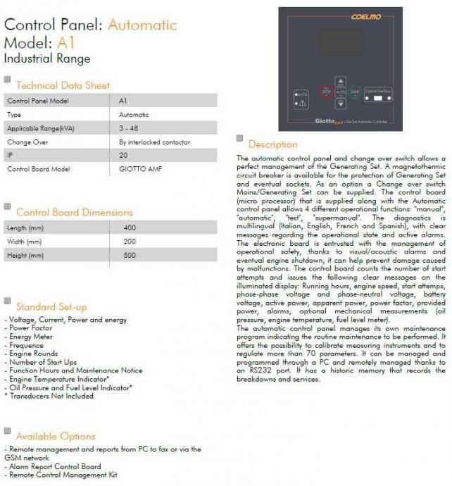 Electric Features: 400/230 V + N