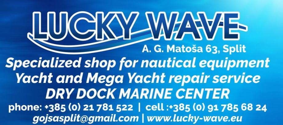 LUCKY WAVE specializes in nautical equipment, yacht and mega yacht service. Sales and representation of nautical equipment, dry marina services and winter maintenance, year-round maintenance with a contract. Complete care of your ships. Sales of all marine devices (gangways, cranes, air conditioners, refrigerators, generators, chargers, winches, bow thrusters…) with technical advice, secured installation for all equipment purchased from us. As representatives of many companies, we are customer-oriented in providing top quality and service.