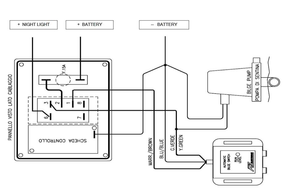 BILAC002 ploča sa dva senzora od nehrđajućeg čelika otkriva prisutnost kaljužne vode i automatski aktivira odvodnu pumpu.