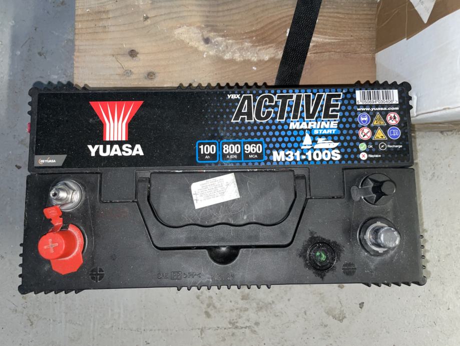 Prodajem rabljeni brodski akumulator Yuasa Active Marine 100 Ah, model: M31-100S, 100 Ah, maksimalna struja 800 A.