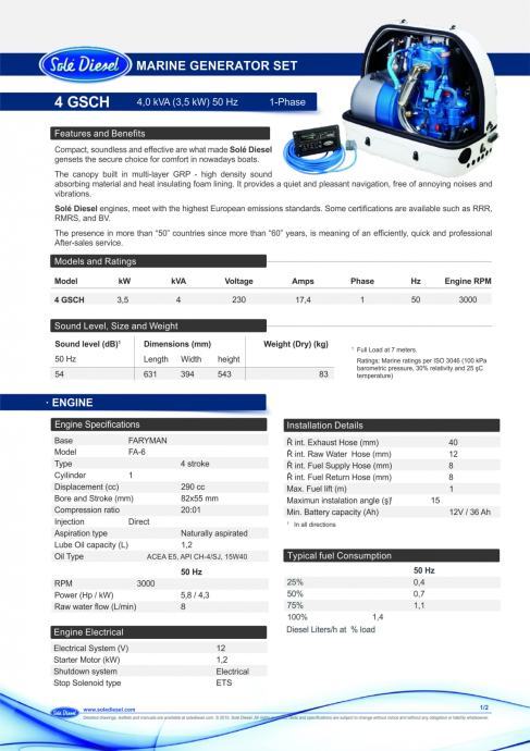 Bazni motor Yanmar 1cil. Maksimalna snaga*: 3 kW (3 kVA), Osnovna snaga**: 2,7 kW