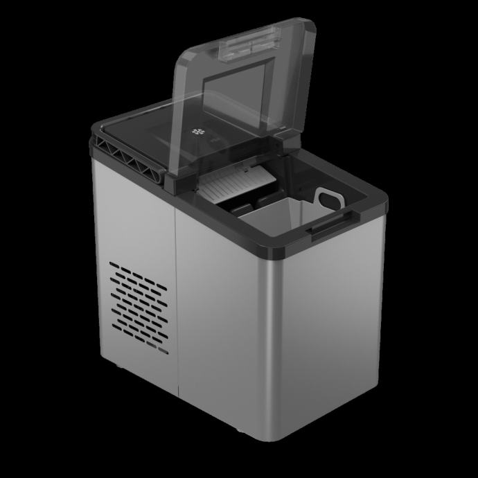 Ovaj ledomat proizvodi kockice leda u dvije veličine za manje od 7 minuta. Kompaktan dizajn s praktičnom ručkom olakšava nošenje. Upravljačka ploča osjetljiva na dodir s dizajnom snježne pahulje olakšava odabir različitih načina rada pomoću različitih boja. Jednostavno napunite spremnik vodom i odaberite željenu veličinu kocke.