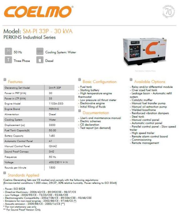 Electrical interruptions have become more frequent than in the past due to climatic factors and mains network overloads. Protect your belongings and your work with the Coelmo Generating Set that covers a range from 9 to 45 kVA designed for residential and commercial applications, that are equipped with “easy to operate” interfaces, have a reduced size and are extremely silent.