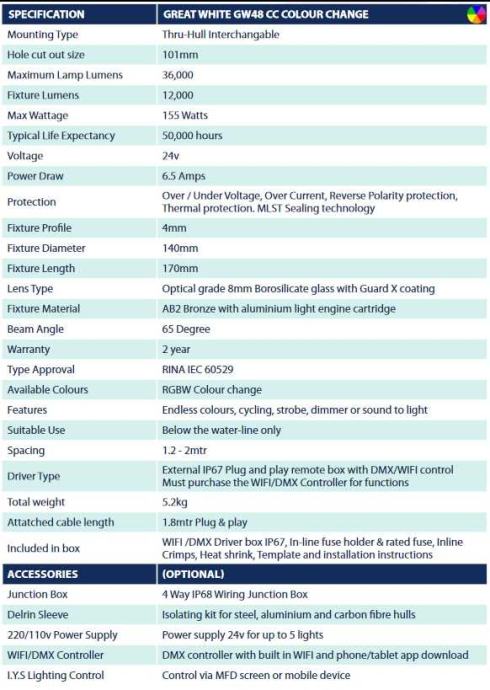 Great White GW48 IFM Colour Change preporučuje se za brodove 30 + m / 105 + ft.