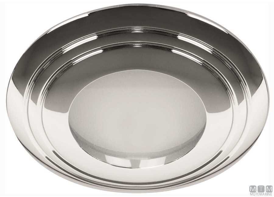 Ugradbeno LED svjetlo za interijere sa okvirom od Kromiranog Mesinga i vijcima od Nehrđajućeg Čelika. Univerzalno napajanje 12/24V - 2,5W. Zaštita IP43.