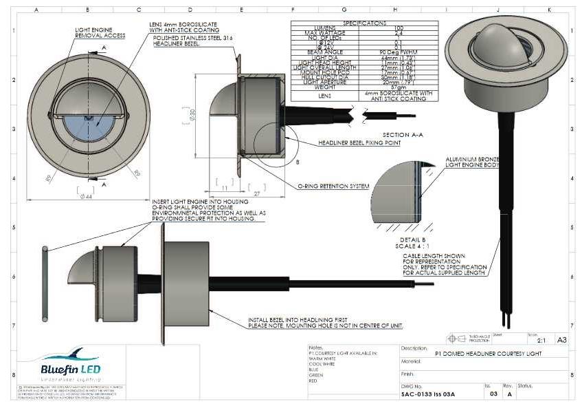 Hi Quality Courtesy Light with removable cartridge for simple installation and maintenance.