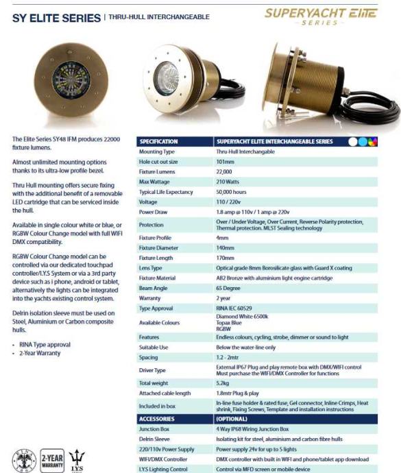 The Elite Series SY48 Thru-Hull produces 22000 fixture lumens.