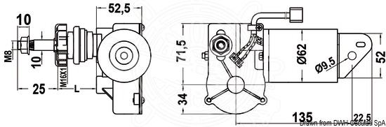 Radni par 5,0 Nm, max 22,0 Nm. Osovinica za fiksiranje dužine "L" 48 mm, (ostale dimenzije po upitu). Max buka 55dB. Priključak DIN.