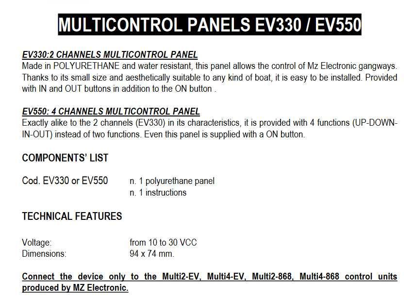 Nove upravljačke ploče MZ dostupne su u modelima s 2, 4 ili 6 tipki tako da se bilo koja vrsta opterećenja s maksimalnim kapacitetom od 2 A. može lako kontrolirati. Prikladni za uporabu s sidrenim vitlima, kočnicama, pregradama ili drugim dodacima koji se postavljaju na plovilo, ove ploče su ograničene veličine, pametne i prilagodljive bilo kojem stilu.
