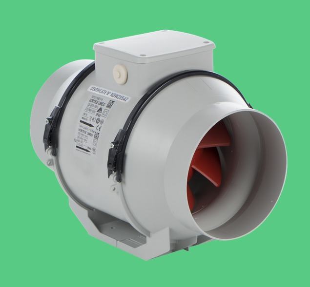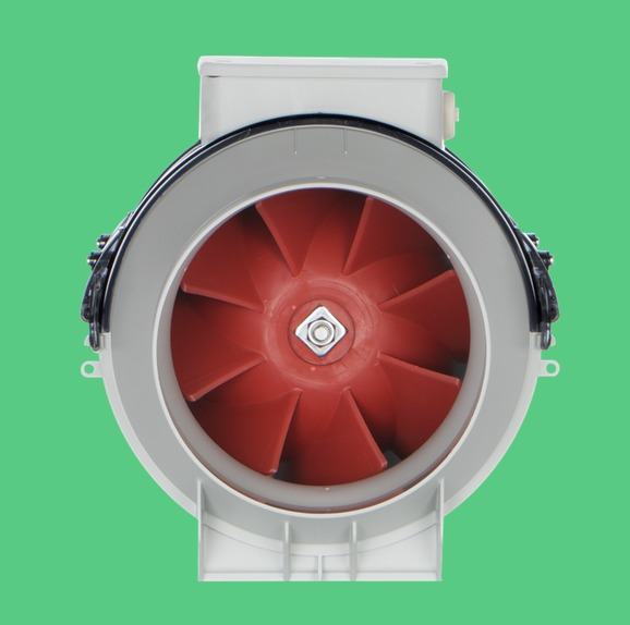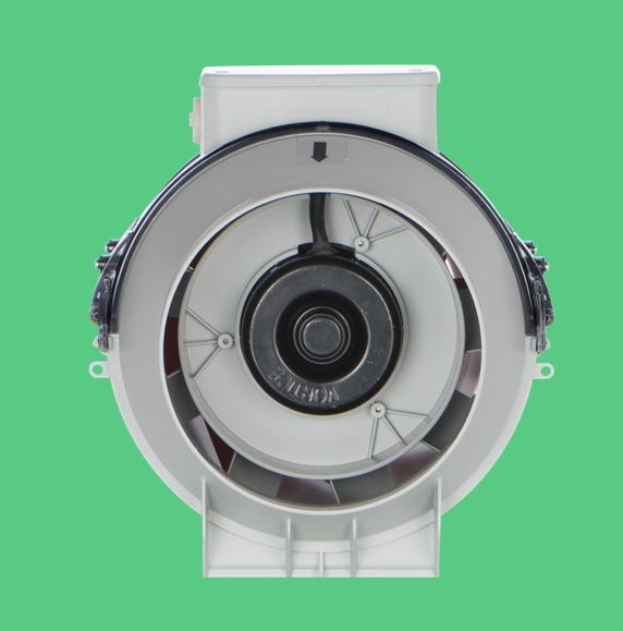 • 2 speed AC motor with thermal overload cutout and shaft turning in ball bearings, coupled to mixed flow axial-centrifugal impeller.