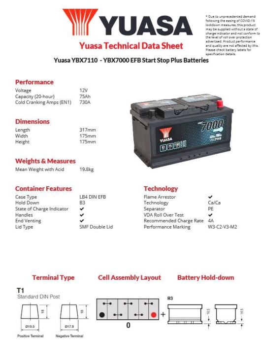 Feature Range YBX7000 EFB Start Stop Plus Batteries