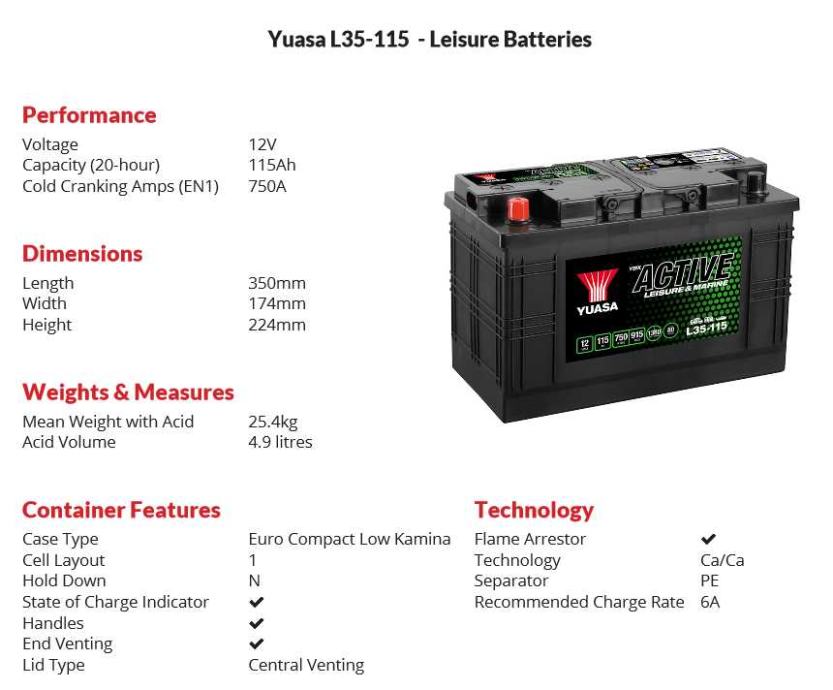 YUASA YBXL35-115 YBX Active Leisure & Marine Battery 12V 115Ah 750A