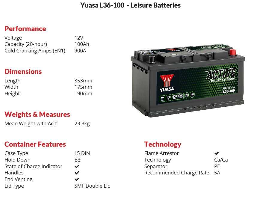 YUASA L36-100 YBX Active Leisure & Marine Battery 12V 100Ah 900A
