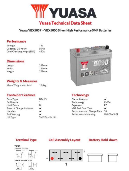 Feature Range YBX5000 Silver High Performance SMF Batteries