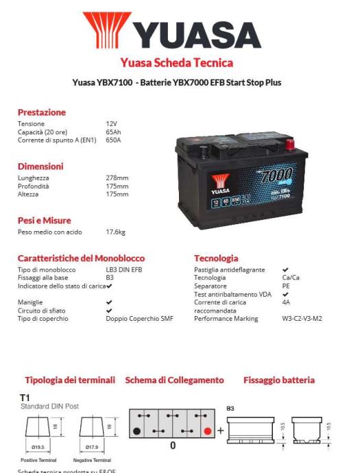 Feature Range YBX7000 EFB Start Stop Plus Batteries