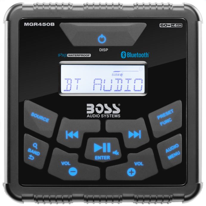 - USB Aux, Input Front, Rear / Sub Pre Amp Outputs USB punjenje BT audio streaming, play i upravljanje