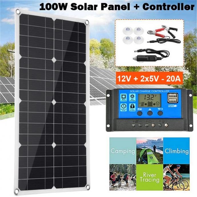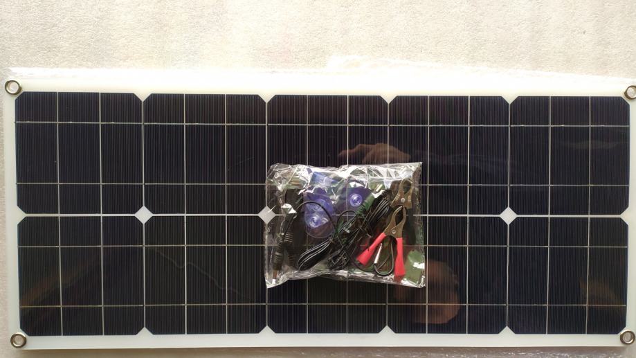 Solarni Monokristalni panel 18V sa izlazima 12V za punjenje akumulatora i 2x5V USB za brzo punjenje 2 mobitela.