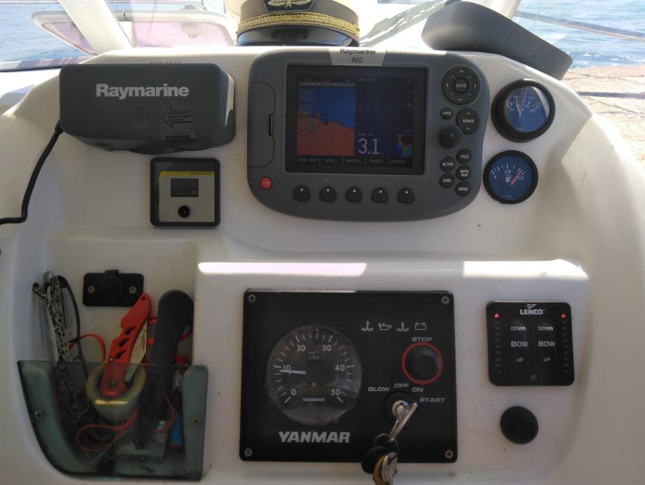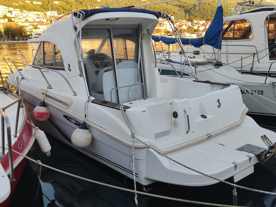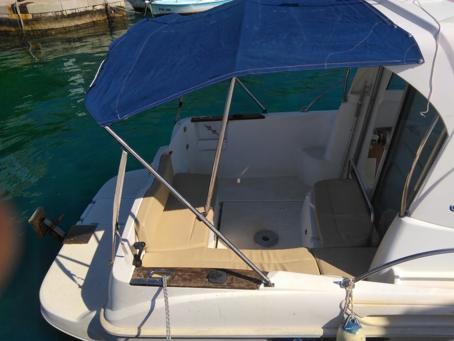 Prodajem Antares 6, 2008 g. Motor Yanmar 110 KS ima 1005 sati. Brodica je u izvrsnom stanju i ima dosta dodatne opreme. Bimini, tenda za kompletno zatvaranje krme, električni flapsovi, unutarnji i vanjski kušini, špirun, fishfinder Hummetbird 60, kemijski WC, vanjski i unutarnji stol, krmena platforma, nosač za pomoćni motor, električno sidro i sidreni lanac 50 metara.