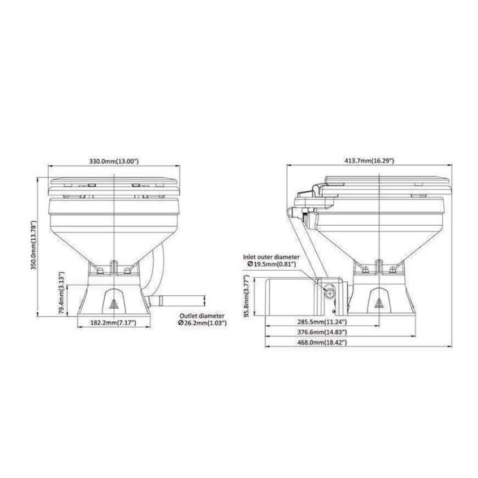 BOAT TOILET 12 V - 350 x 330 x 468 mm - SEAFLO MTE101