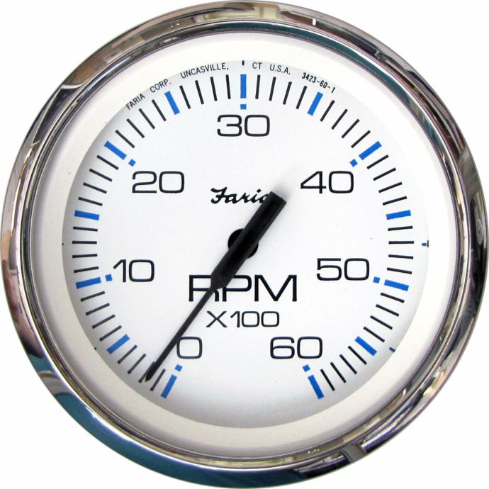 FARIA INSTRUMENT TACHOMETER WHITE/INOX 6,000RPM - 33807