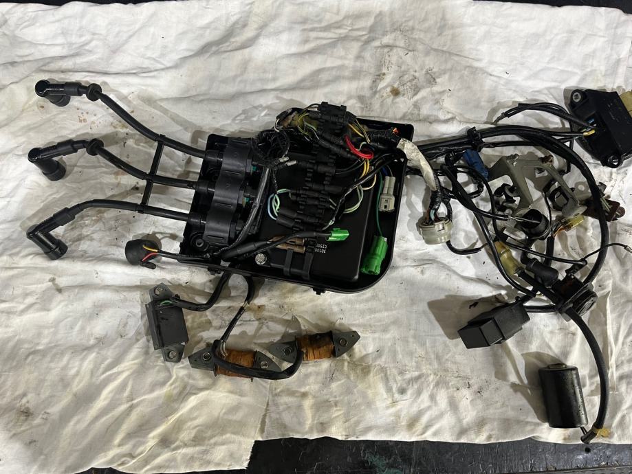 Trim, karter, auspuh, middle section, karburatori, pumpa goriva, anlaser,zamašnjak, kompjutor, bobine, ožičenje, plastike, kapa..