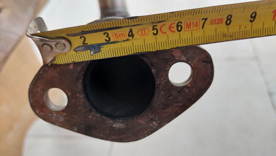 Inox auspuh, prirubnica sa razmakom rupa 60mm, promjer cijevi 38mm.