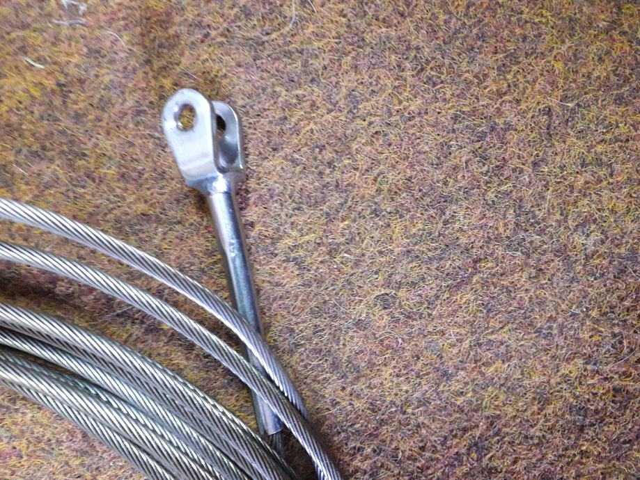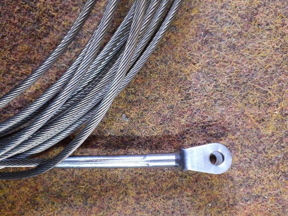 Inox sajla A 4 10 metara fi 4 mm pertlani završetak unutarnji dio pertlanog dijela unutarnji 10 mm vanjski 16 mm provrt 6 mm. Za brodske upravljačke komande pogone i drugo.