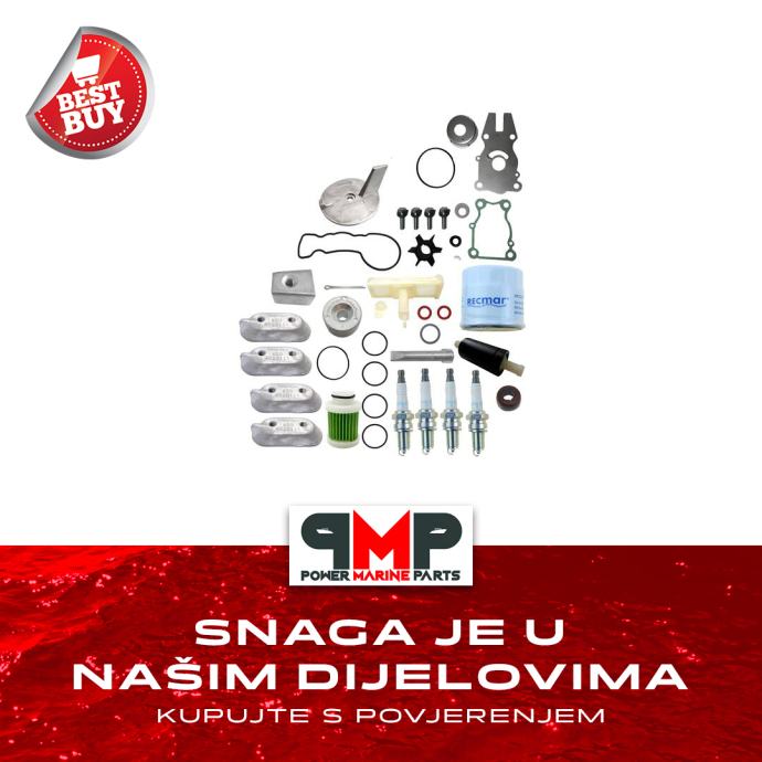 anode, impeleri, svjećice, filteri ulja, goriva, zraka, remeni, ulja, ispušna koljena i kolektori, alnaseri, alternatori, manžete, dijelovi motora i pogona, motori, z-pogoni, propeleri...