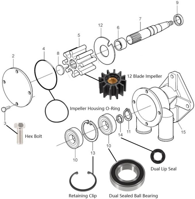 Komplet za reparaciju pumpe morske vode za benzinske Volvo Penta motoe GXI GSI za sve modele 3.0 4.3 5.0 5.7 8.1.