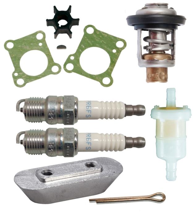 Anodes; impellers; spark plugs; oil, gas and air filters; belts; oil; exhaust elbow and manifolds; starters; alternators; joints; engine and drive components; engines; z-drives; propellers...