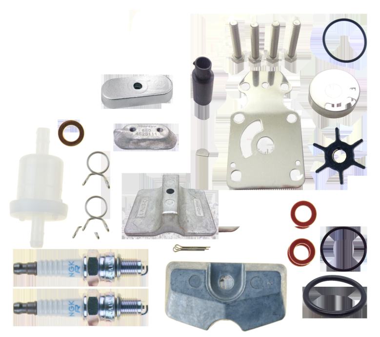 Anodes; impellers; spark plugs; oil, gas and air filters; belts; oil; exhaust elbow and manifolds; starters; alternators; joints; engine and drive components; engines; z-drives; propellers...