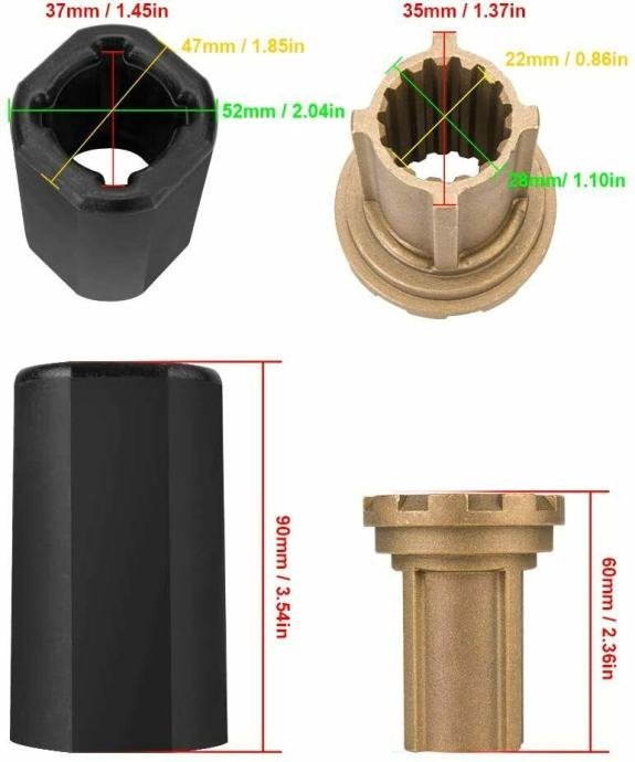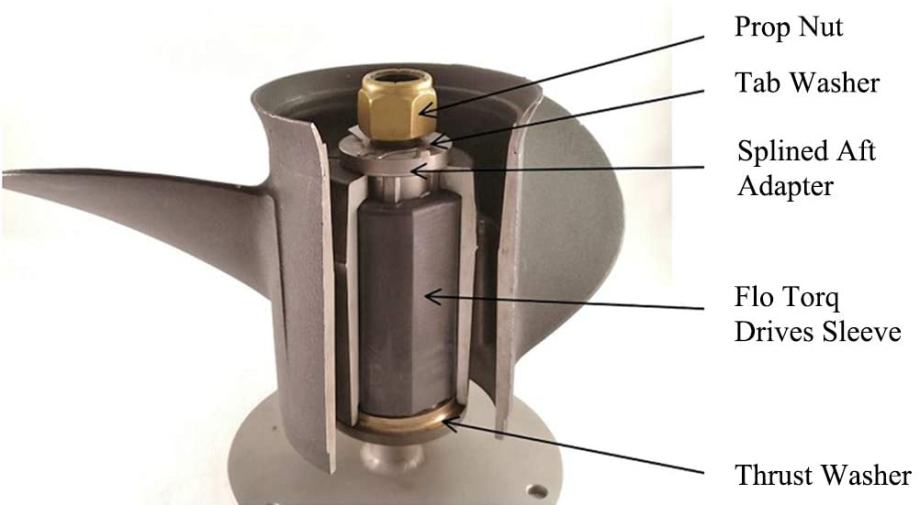 Uključuje: prednju potisnu podlošku, pogonsku čahuru, adapter za krmu, podlošku i maticu propelera, prikladne za fine podupirače;