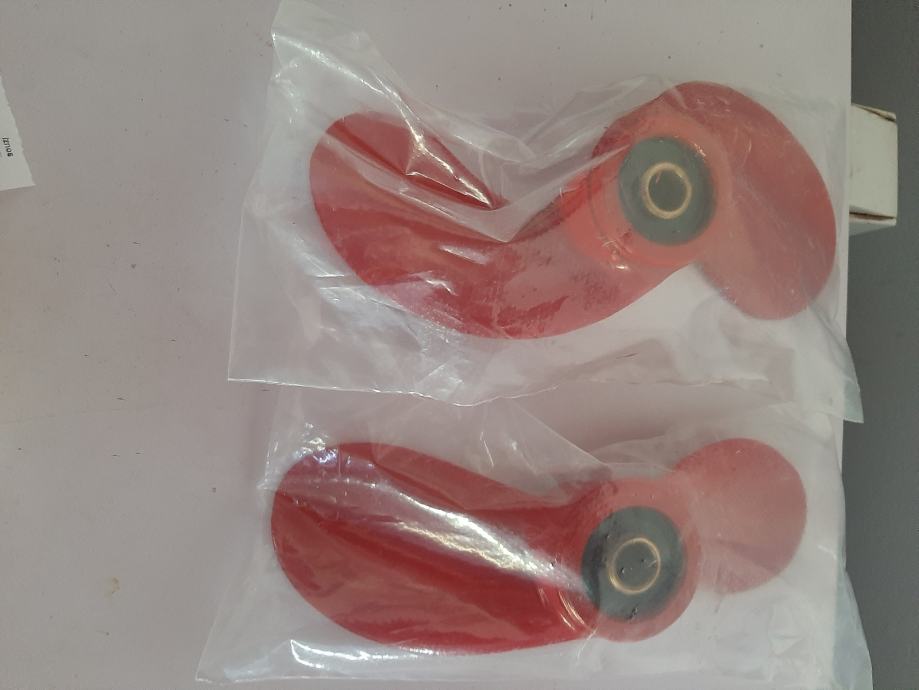 2. PROPELER (2 KRAKA) ZA T-4, 4,5. JEDAN JE STANDARDNI (KORAK MU JE 140), A DRUGI JE TZV. "TERETNI" - (KORAK 120). Nešto je sporiji, ali je snažniji (bolje vozi plovilo u kojemu je veći teret (više osoba i (ili) robe. OBA SU ZA NOVI TIP TOMOSA, S RASCJEPKOM NA OSOVINI I KAPICI PROPELERA. Cijena bilo kojeg propelera je 55 €.