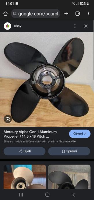 mercruiser alfa 1gen2 propeler D - 14.5 x18 ispravan provjeren i balansiran - 4 pate