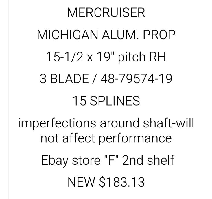 Očuvana aluminijska trokraka elisa oznake 48-79574-19 za Mercruser motore.
