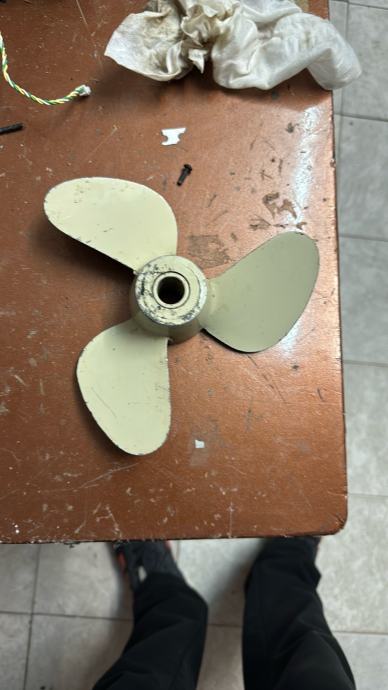 Propeler za vanbrodski motor kao nov. Promjer osovine 17 mm duzina krila 9 cm sirina 6 cm