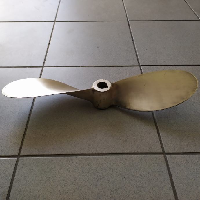 brončani propeler 2 krila za osovinu promjera 30 mm, motore od 45 - 56 PS , jedrilice 40 - 45 stopa.