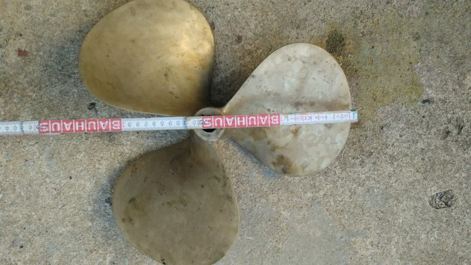 Prodajem trokraki rabljeni propeler desnokraki za osovinu fi 30 mm. Dimenzije propelera - promjer 380 mm, korak 380 mm.