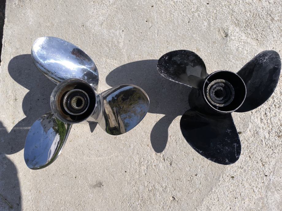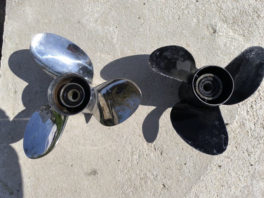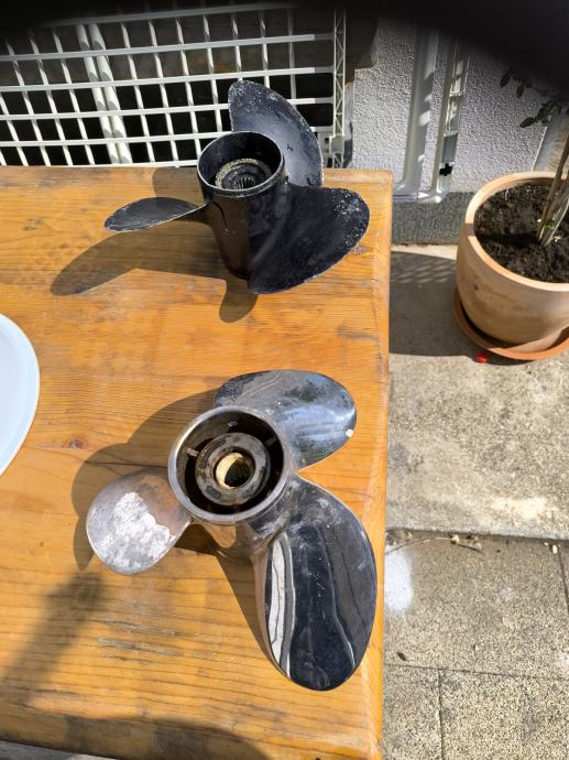 Prodajem 2 propelera za suzuki, jedna od kroma 14x 18 jako malo korištena, druga od aluminija 14 x 19 više korištena.