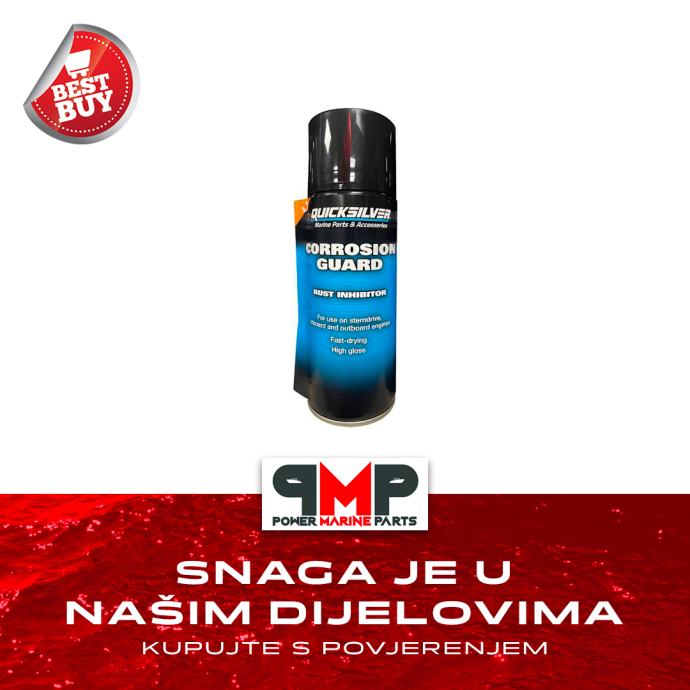 Quicksilver Corrosion Guard nanosi se po svim dijelovima motora kako bi se spriječila korozija i hrđa tijekom zime i tijekom skladištenja.