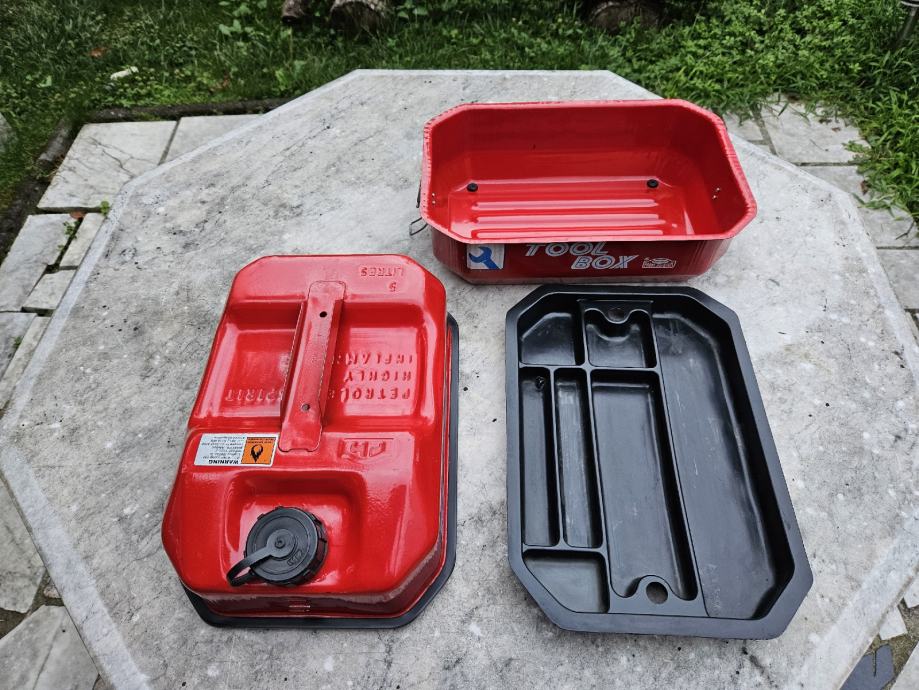 Novi limeni rezervar 5litara sa posudom za alat, top stanje!