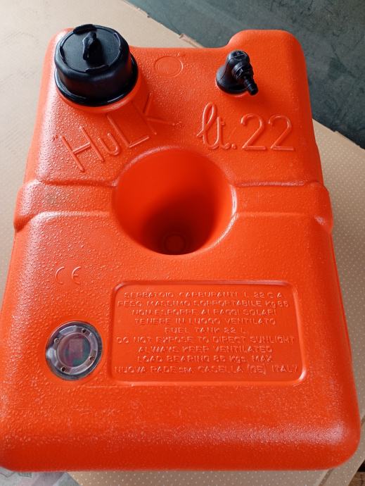 Rezervar za gorivo marke Hulk 22 Lit. s pokazivačem goriva, te priključcima. Rezervar očuvan bio u spremištu barke. Po dogovoru mogući priključci ovisno o marki motora.