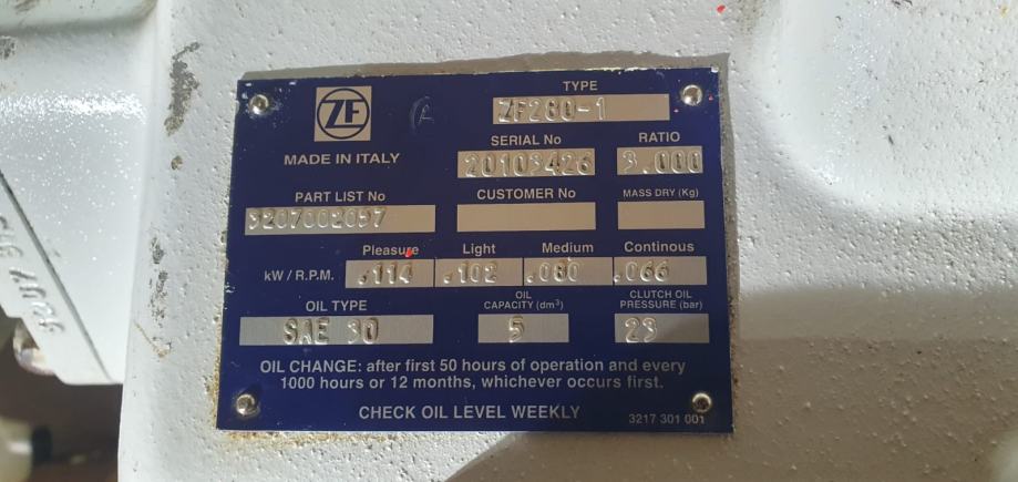Nudim jednu skoro novu, hidrauličnu brodsku Kopču ZF 280-1. Omjerom od 3:1. Ona bila samo 15 sati na motoru montirana radi testiranja i poslije toga je opet skinuta. To znači da je skoro nova.