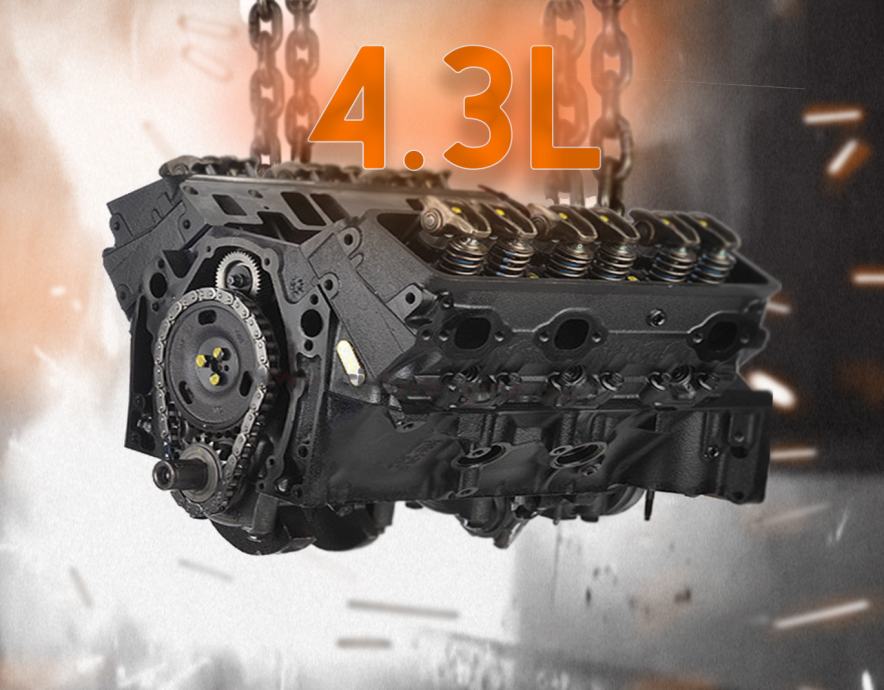 4.3L V6 OHV Chev/GM longblock motor. Ovaj GM 4.3 V6 motor za prodaju odgovara primjenama iz 2000. godine s valjkastim klackalicama i metričkim vijcima za starter, kućište zvona i nosače motora (odljev br. 14099090M).