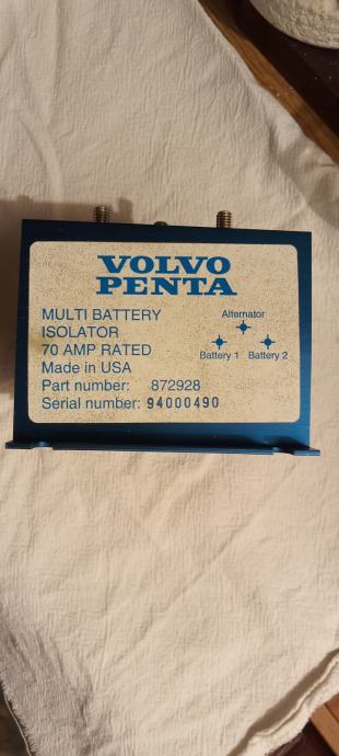 Originalni švedski distributor punjenja kojim se preko jednog alternatora pune dvije nezavisne baterijske sekcije ( baterije za motor i baterije za potrošnju po brodu). Nikad korišteno. Sve je u originalnoj kutiji sa detaljnim uputstvima o ugradnji, vrstama spajanja sa jednim ili više alternatora, vrlo detaljnim uputama na više jezika. U cijenu ulazi i trošak dostave Tisak paketom.