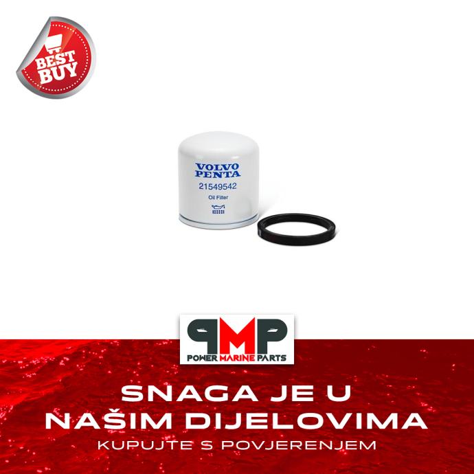 Volvo Penta filter ulja 21549542 za Volvo Penta motore: AQD21A/B, AQD32A, MD21A/B, MD32A, TAMD61A, TAMD62A, TAMD63L-A/P-A, TAMD71A/B, TAMD72A, TAMD73P-A/WJ-A, TAMD74A-A/A-B/C-A/C-B/L-A/L-B/P-A/P-B i TAMD75P-A.