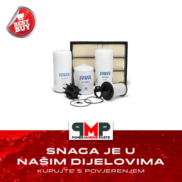 anode, impeleri, svjećice, filteri ulja, goriva, zraka, remeni, ulja, ispušna koljena i kolektori, alnaseri, alternatori, manžete, dijelovi motora i pogona, motori, z-pogoni, propeleri...