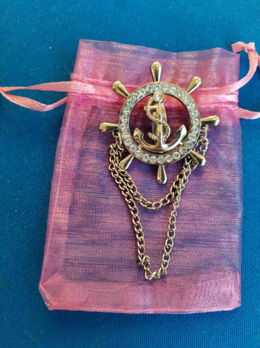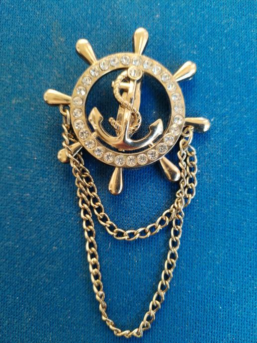 Prodajem novi broš, koji prikazuje kormilo s "cirkonima" u kojem je sidro s većim "cirkonom".