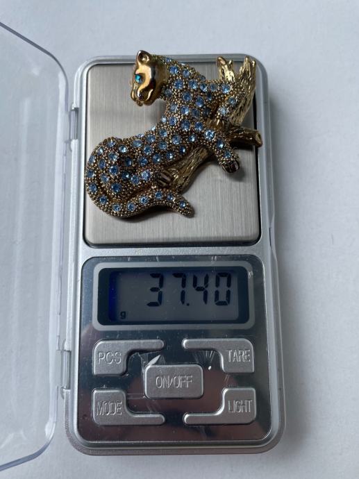 Prekrasan broš LEOPARD sa kristalima, dimenzije: 6,1 x 4,1 cm, težina: 37,40 grama. Poštarina prema cjeniku Hrvatske pošte ili osobno preuzimanje. Ne šaljem pouzećem.